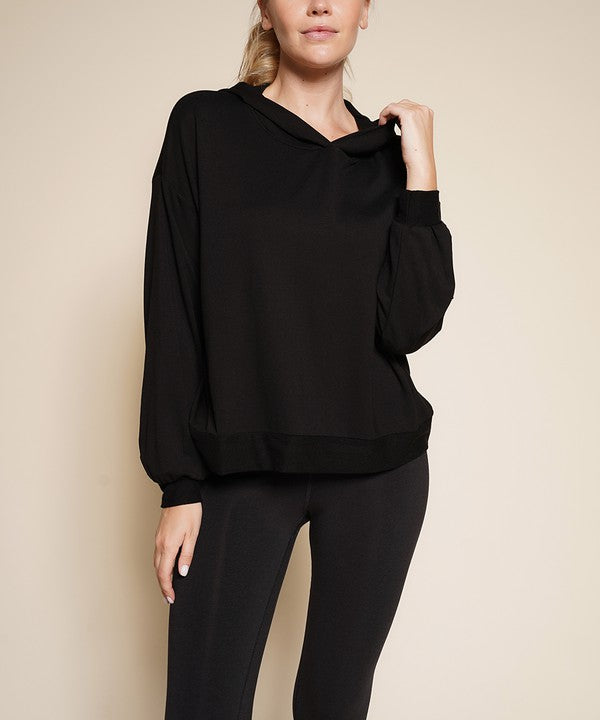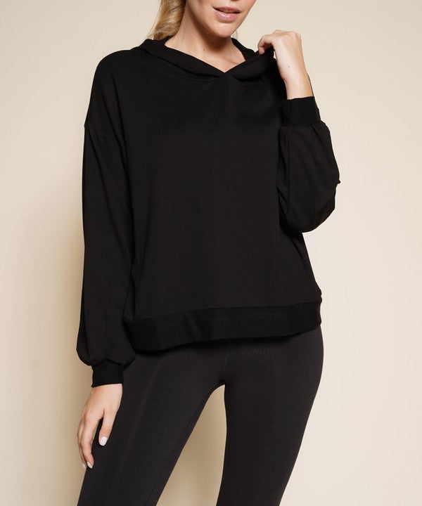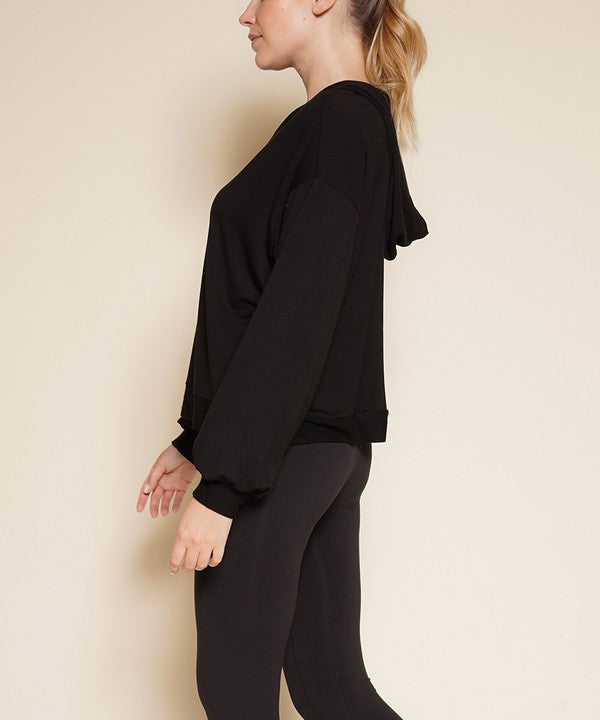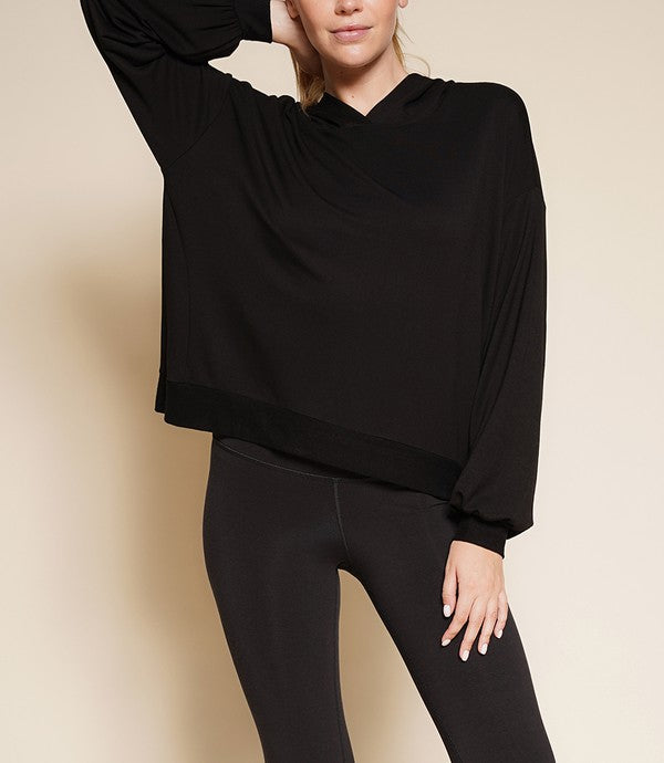 Introducing... The Allison! A super soft black french terry bamboo hoodie. Features slight oversized fit with banded hem. Made of soft bamboo viscose french terry. Perfect for cool spring days and nights by the fire!