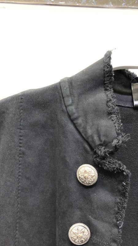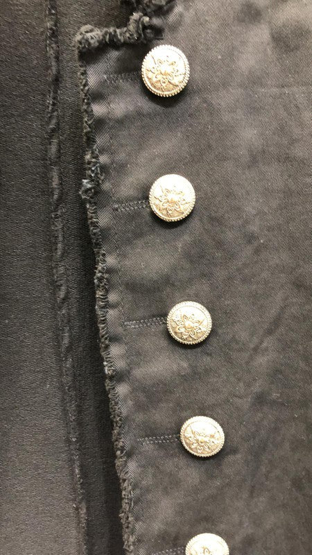 We absolutely ADORE this jacket for ALL seasons! Vintage Black (Nero) Venti6 Sgt Pepper style jacket has distressed fringed edges all around; cuffed sleeves. Decorative silvertone (non-working) buttons on both sides; Side pockets.
